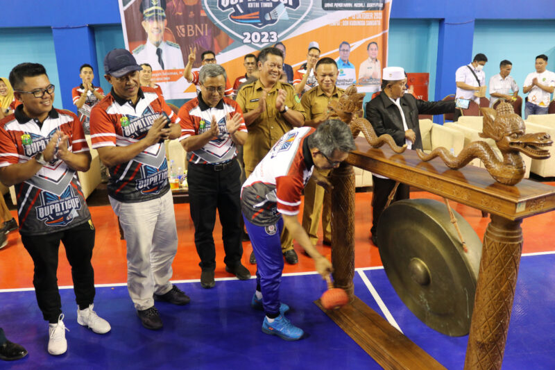 UPNUSAKITA.COM, SANGATTA – Sebanyak 312 atlet mengikuti kejuaraan Bulutangkis Bupati Cup 2023 yang dilaksanakan oleh Persatuan Bulutangkis Seluruh Indonesia (PBSI) Kabupaten Kutai Timur (Kutim) bekerja sama dengan Dinas Pemuda dan Olahraga (Dispora) Kutim. Turnamen tersebut dibuka langsung oleh Bupati Kutim Ardiansyah Sulaiman yang ditandai dengan pemukulan gong di Gedung Olahraga (GOR) Kudungga Sangatta, Senin (9/10/2023) sore.