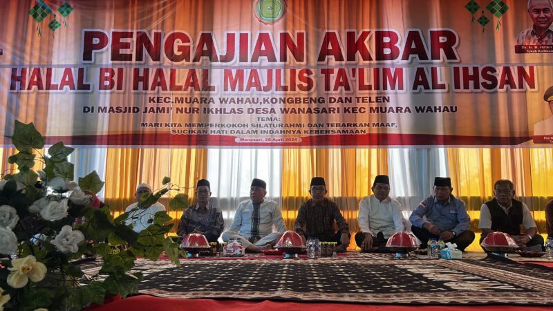 Upnusa, MUARA WAHAU- Suara merdu ayat suci Al-Quran mengisi ruang masjid Nur Ikhlas, Desa Wanasari, Kecamatan Muara Wahau, saat digelar pengajian akbar dan halal bihalal. Acara yang melibatkan masyarakat dari tiga kecamatan, yakni Muara Wahai, Kombeng dan Telen, sukses menarik ribuan jemaah untuk datang dan turut memeriahkan kegiatan dimaksud, Minggu (28/4/2024).